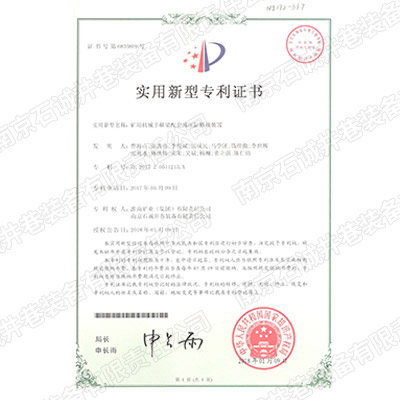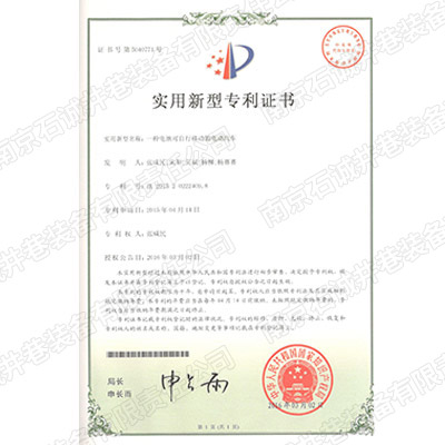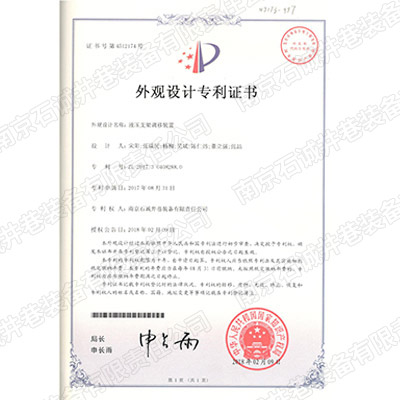 液壓調(diào)移裝置外觀設(shè)計專利證書